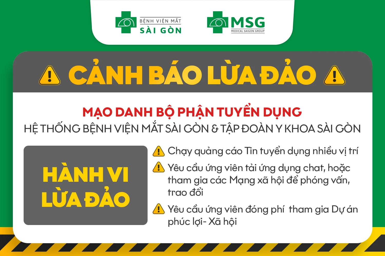 Cảnh báo lừa đảo mạo danh Bộ phận Tuyển dụng của Hệ thống Bệnh viện Mắt Sài Gòn và Tập đoàn Y khoa Sài Gòn