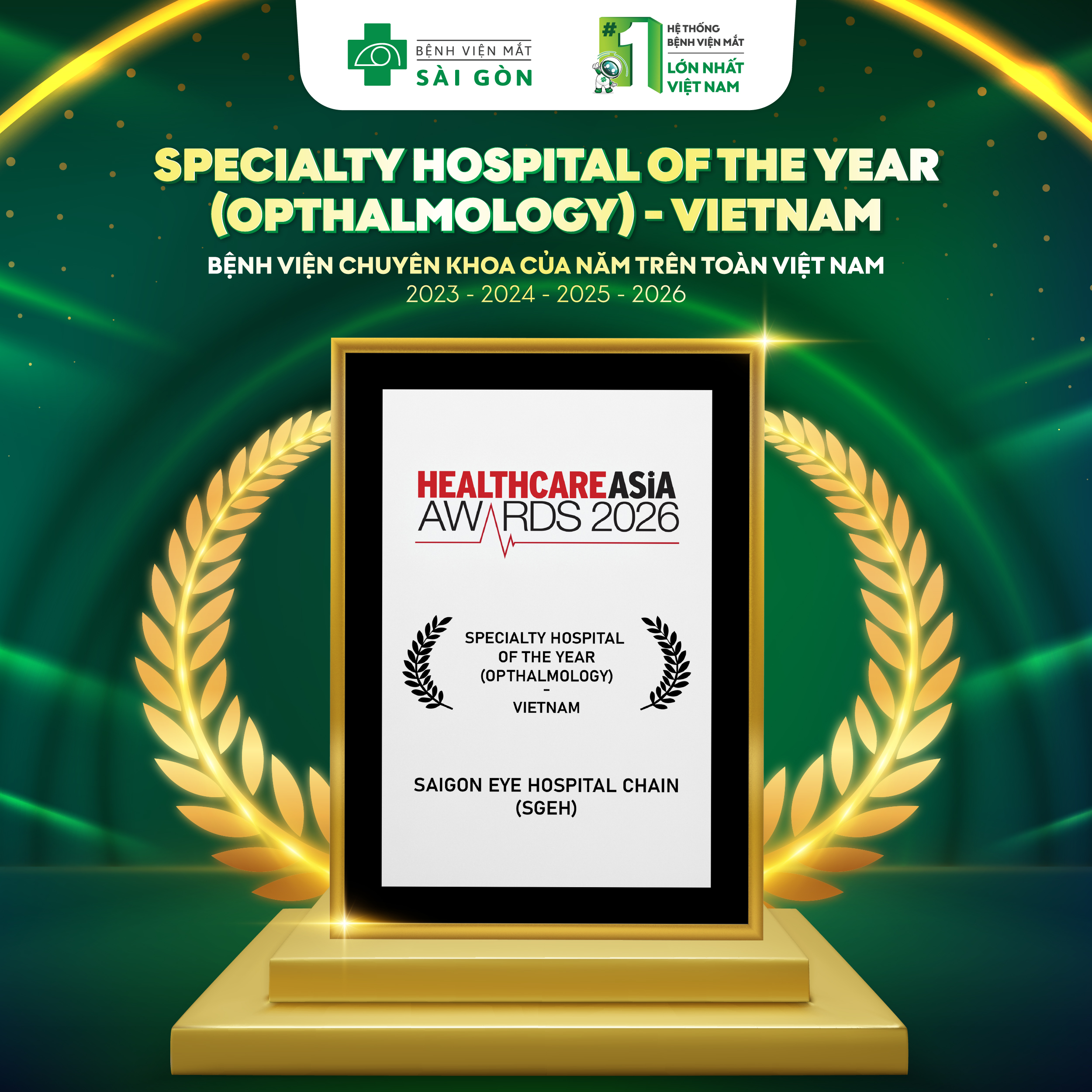 Trở thành bệnh viện chuyên khoa Mắt ngoài công lập hàng đầu tại Việt Nam được cộng đồng tín nhiệm trên cơ sở cung cấp dịch vụ Y tế chất lượng cao và dịch vụ chăm sóc khách hàng tốt nhất.